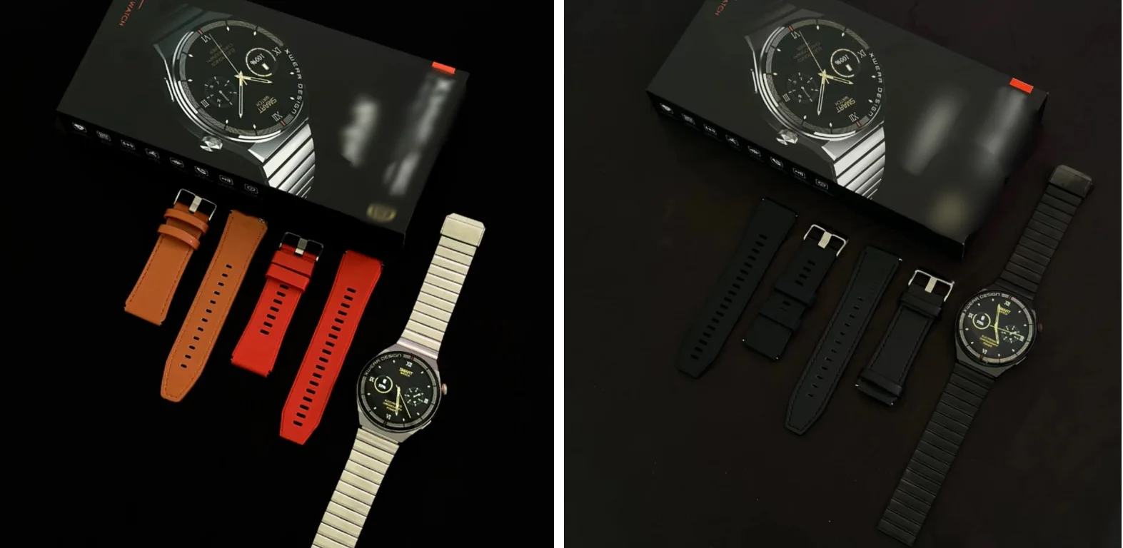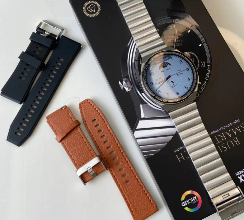 تأتي بشاشة اموليد مع 3 أحزمة لكل مناسبة ، جلد للمناسبات الرسمية ، سيليكون للباس الرياضي ، معدن للاستعمال اليومي